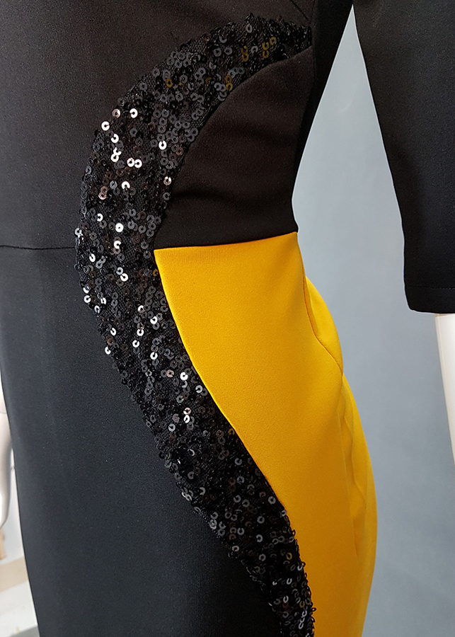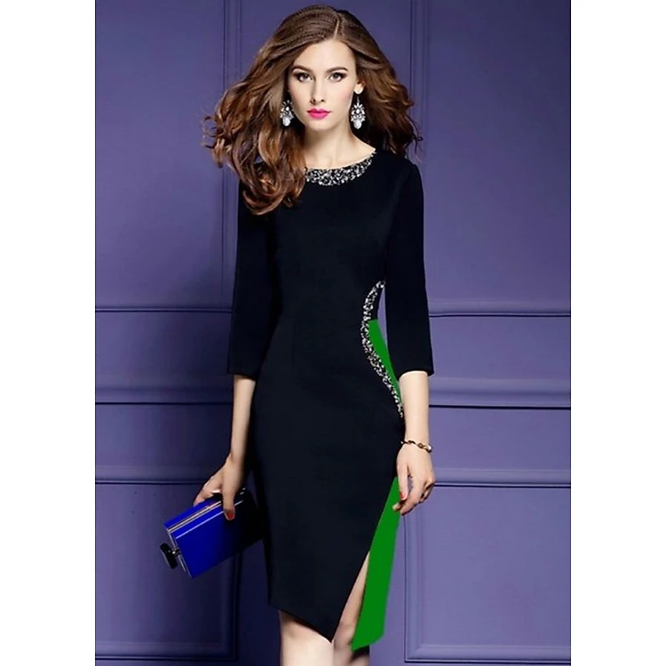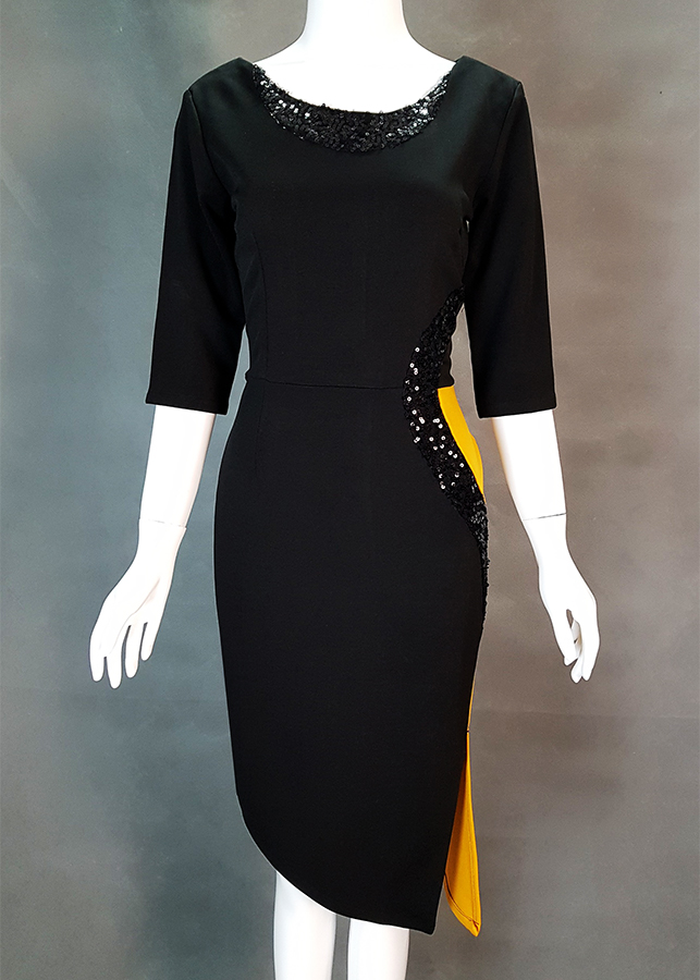 Thiết kế dáng dáng ôm body tay lỡ, kết hợp kim sa màu đen ở cổ áo và eo có ánh trắng rất đẹp và lạ mắt, phần eo và tà được thiết kế phối màu nhẹ ngàng tạo điểm nhất cho chiết đầm tuyệt đẹp, form dáng chuẩn, mặc lên rất đẹp, kết hợp với giầy cao gót thật là hoàn hảo, chất liệu thun cotton lụa cao cấp có độ co giãn mặc lên rất dễ và không có cảm giác khó chịu, dây kéo sau lưng rất dễ mặc, sản phẩm tuyệt vời đừng bỏ qua mẫu đầm này.