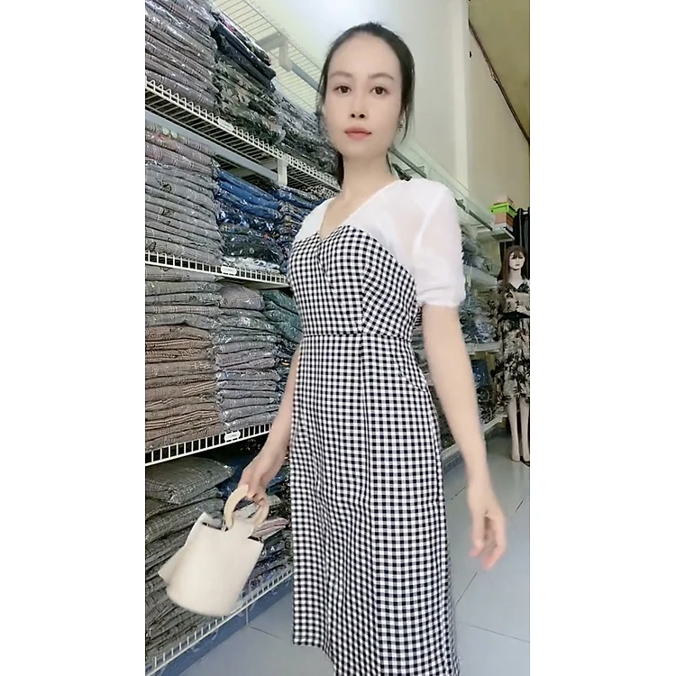 Đầm ôm eo tôn dáng họa tiết kẻ sọc xinh xắn.