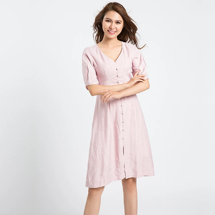 Đầm Công Sở Cao Cấp Đầm Dài Qua Gối Thời trang thiết kế Hity DRE077 (Hồng Anh Đào Sakura)
