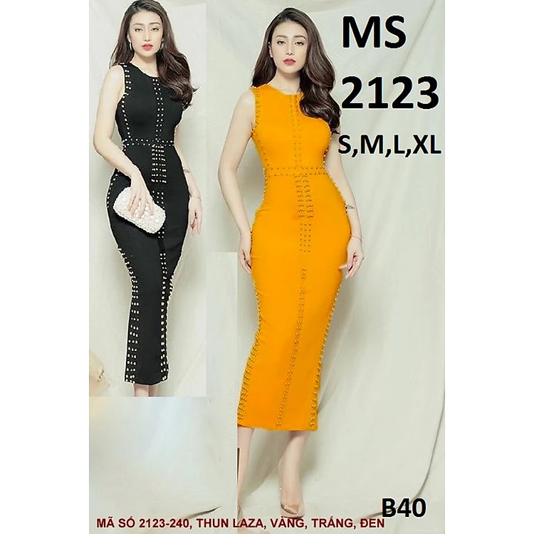Đầm ôm thun Laza kết hạt đồng MS 21239