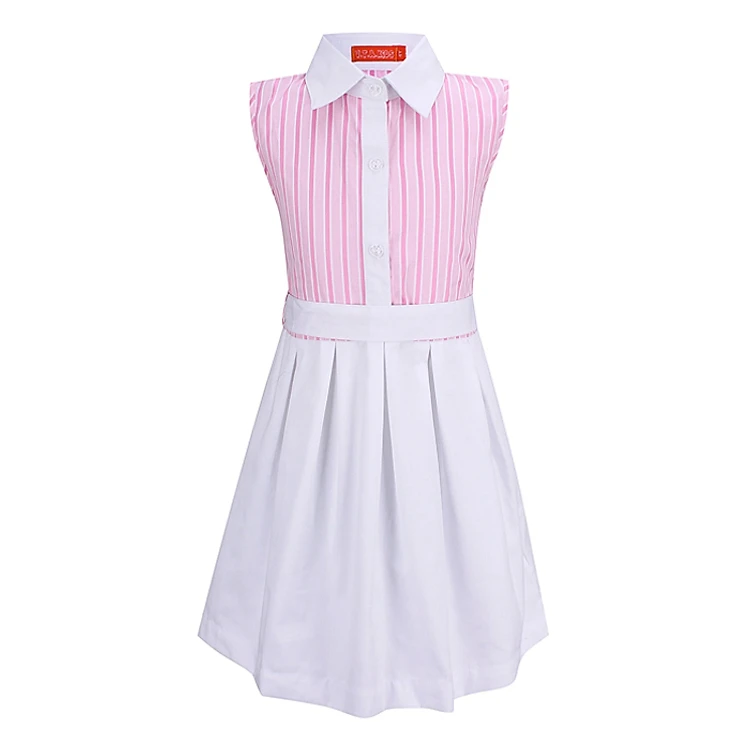 Đầm Sát Nách Bé Gái VTA Kids BG50707H – Hồng thiết kế cổ bẻ, sát nách truyền thống mang lại vẻ dịu dàng, nữ tính cho bé. Đầm có áo được thiết kế họa tiết sọc dọc màu hồng cùng đường nút áo màu trắng nổi bật mang lại vẻ đáng yêu cho bé. Phần chân váy thiết kế xếp ly, xòe duyên dáng, màu trắng đẹp mắt. Với chiếc đầm này, bé có thể dễ dàng phối cùng giày búp bê, giày sandal khi ra ngoài để trông nổi bật hơn.