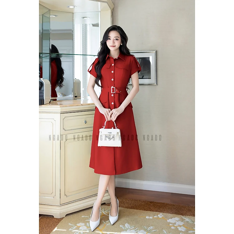 Đầm sơ mi đỏ NGADO , đầm kiểu Nữ , đầm dự tiệc , sang trọng