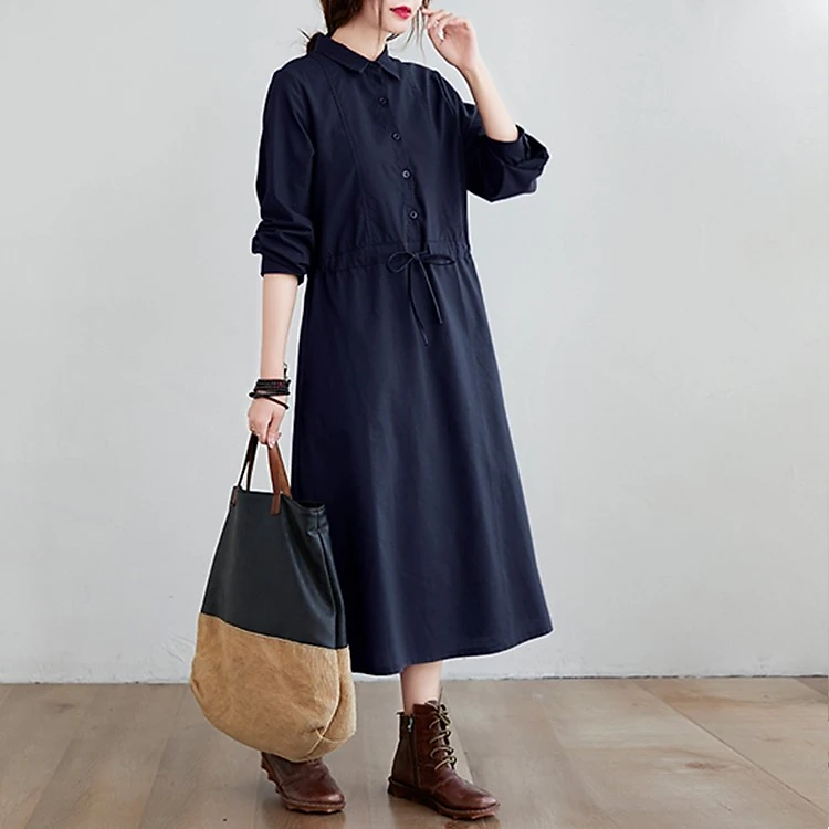 Đầm sơ mi nữ dài tay, có dây chỉnh eo, dáng suông dài chất liệu đũi cao cấp, phong cách công sở Haint Boutique