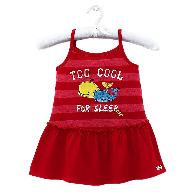Đầm được thiết kế kiểu hai dây phối form xòe nhẹ nhàng tạo sự thoải mái cho bé khi mặc. Phần tà được may xếp ly duyên dáng, đẹp mắt. Bề mặt đầm in hình hai chú cá voi đang say sưa ngủ thật đáng yêu. Đầm sử dụng tông màu đỏ nổi bật mang đến phong cách sành điệu hơn cho các bé gái.