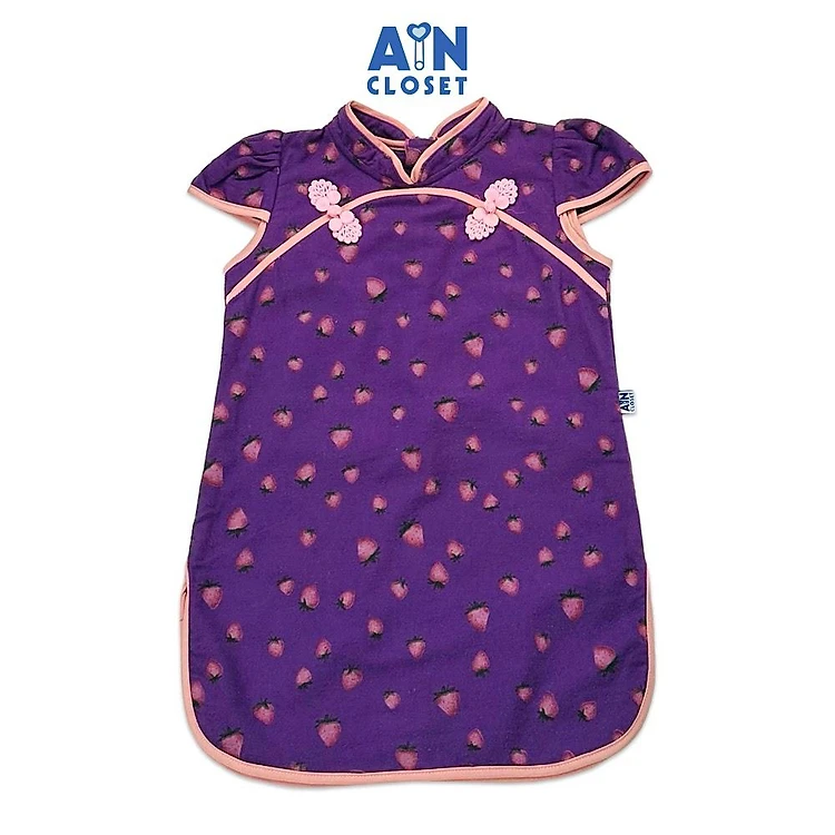 Đầm sườn xám bé gái họa tiết Dâu Tím thô bông - AICDBGAKKE3B - AIN Closet