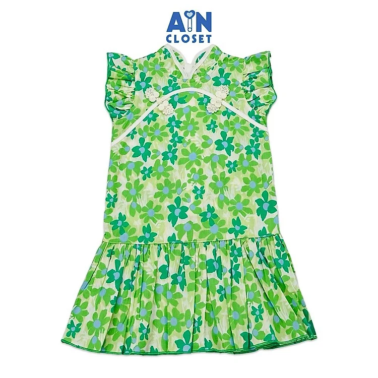 Đầm sườn xám bé gái họa tiết Hoa Xanh cotton - AICDBGLGVR21 - AIN Closet