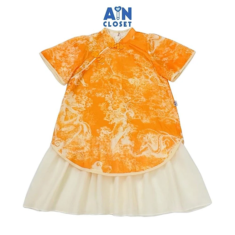 Đầm Sườn xám bé gái họa tiết Rừng Già Cam tơ - AICDBGUOTNZV - AIN Closet