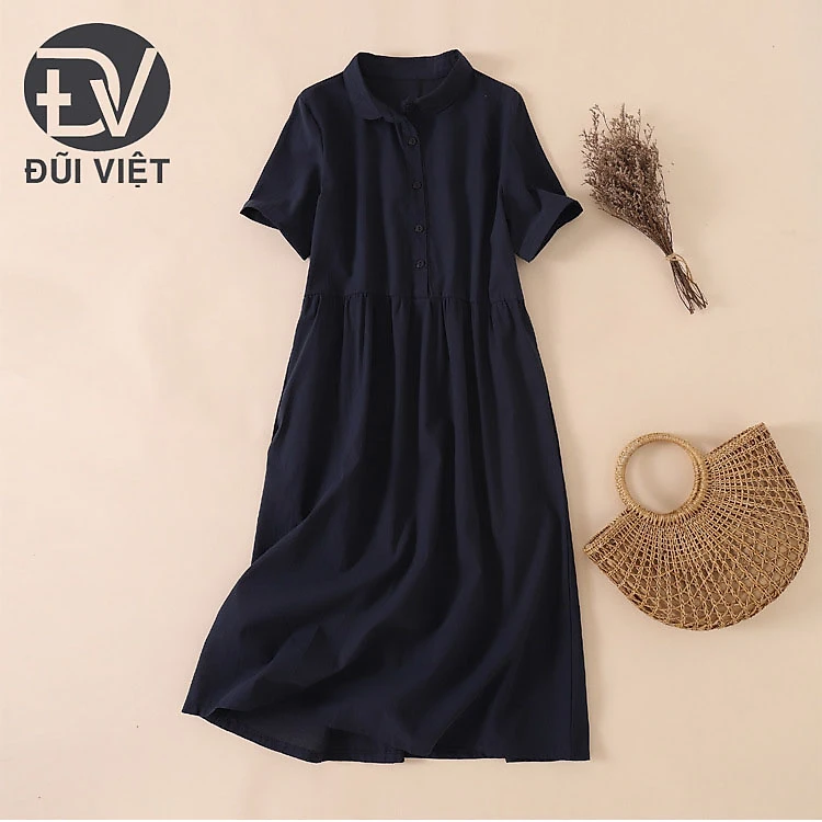 Đầm suông babydoll cổ sen dáng rộng chất liệu Linen mềm mịn mặc thoải mái, thoáng mát da158