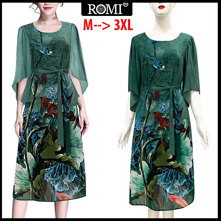 Đầm Suông BigSize In Hoa Lá Kiểu Đầm Suông Trung Niên Dự Tiệc Size Lớn ROMI 3269