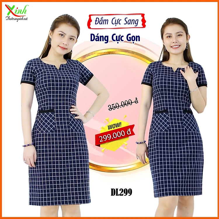 Đầm suông caro công sở ThoiTrangXinh DL299