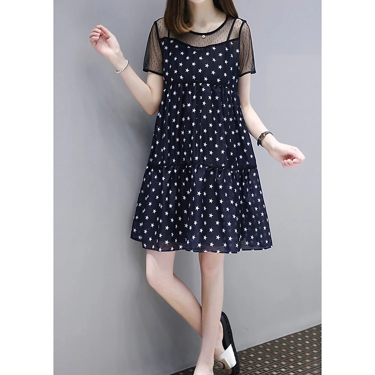 Đầm suông nữ hình sao phối ren db10