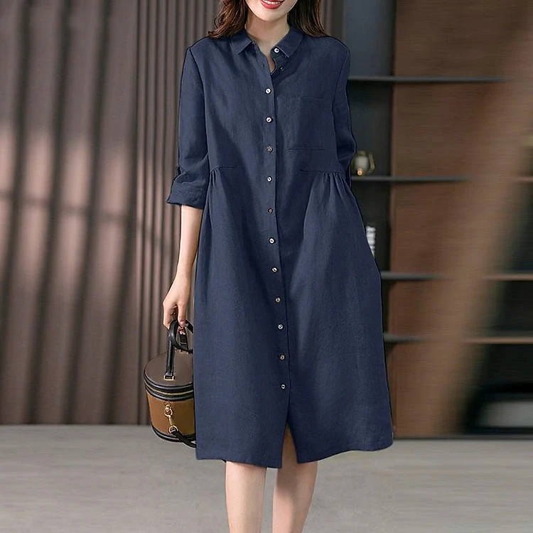 Đầm suông nữ Linen sắn tay phối cổ sơ mi sang trọng, lịch sự da207