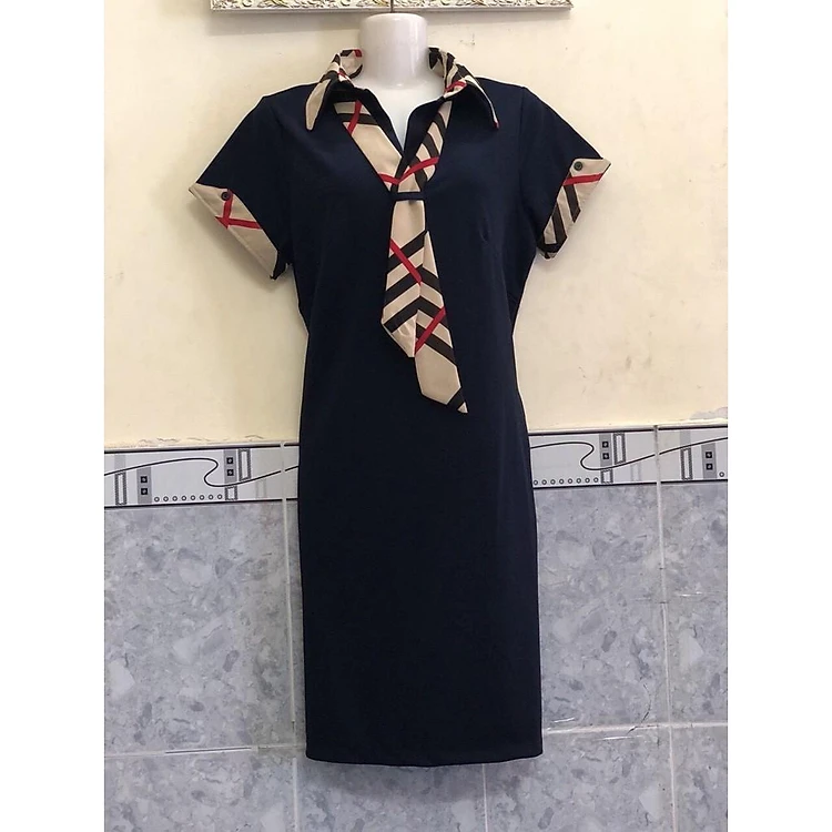 Đầm suông nữ thời trang công sở dạo phố màu xanh đen Mẫu 1