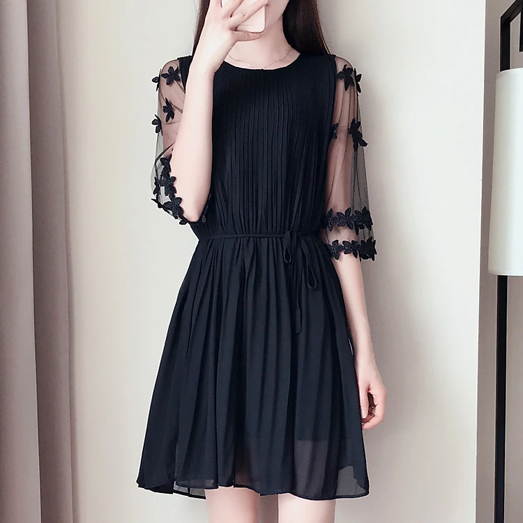 Đầm suông nữ xếp ly thiết kế tay lỡ phối ren Da36