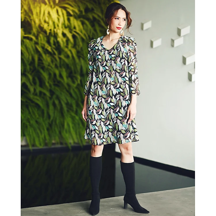 Đầm Suông Chiffon In Hoa Olive thời trang thiết kế Hity Dre170