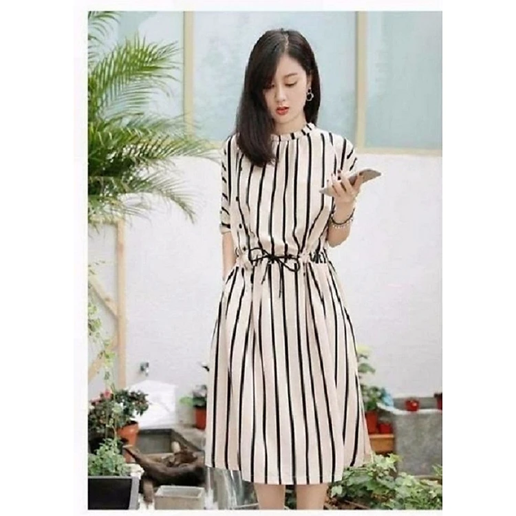 đầm suông kẻ sọc eo rút