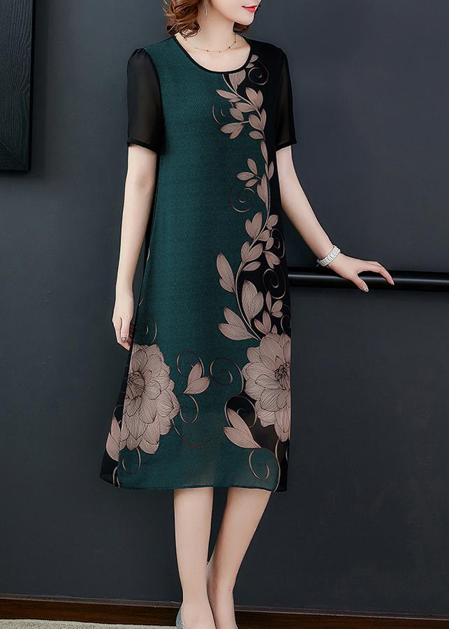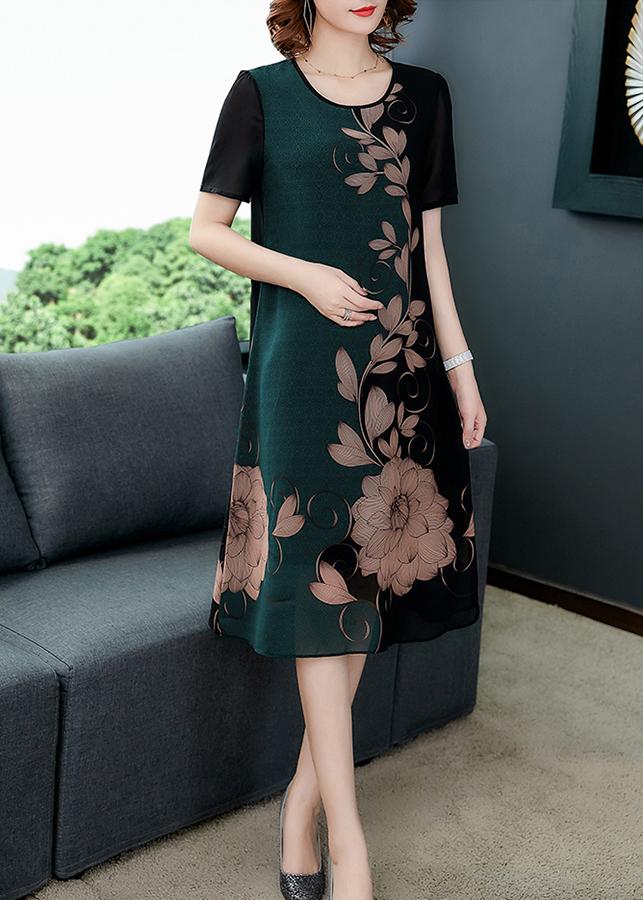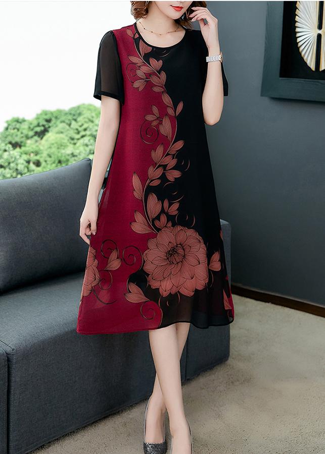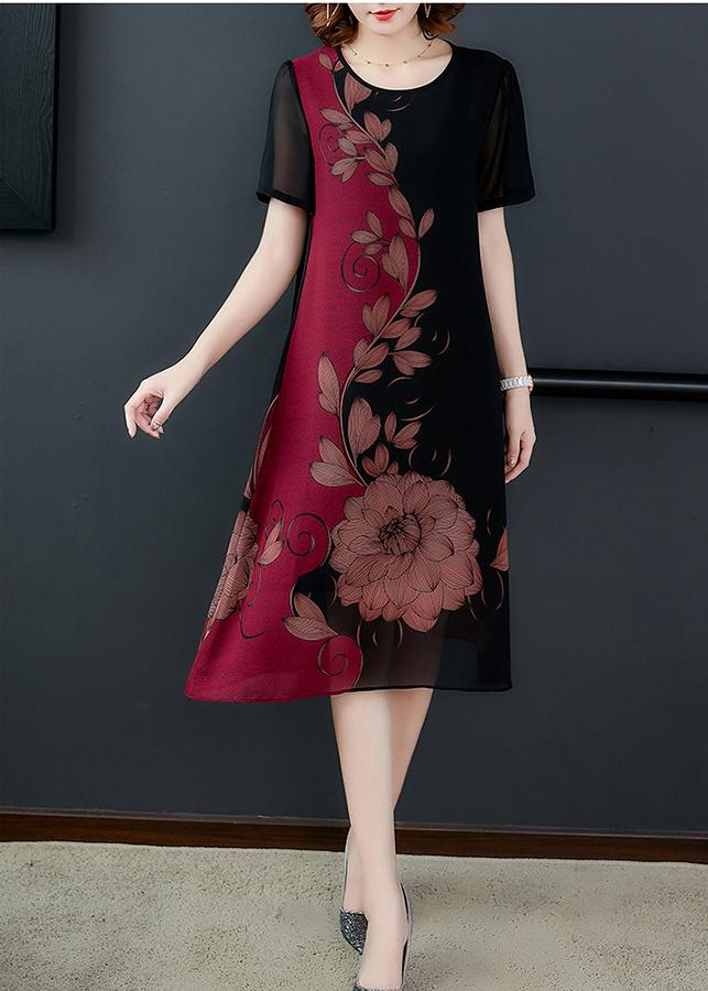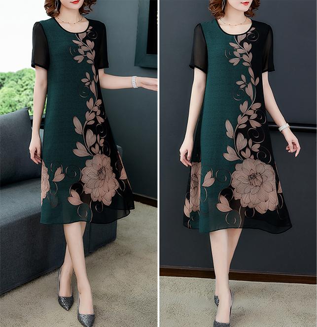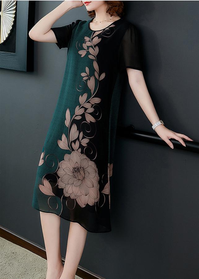 Đầm Suông Voan Nữ Đẹp In Họa Tiết Liên Hoa Kiểu Đầm Suông Thời Trang Trung Niên Cho Người Mập Từ 53-78Kg SHOPPRO 3226