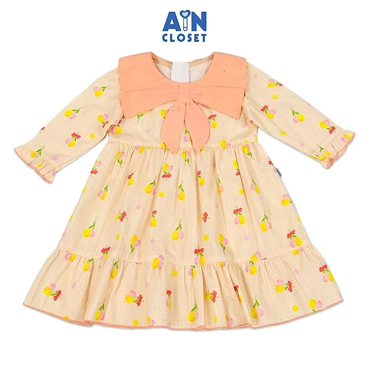 Đầm tay dài bé gái họa tiết hoa Kim Hương Nơ Cam cotton - AICDBGIVIGWH - AIN Closet