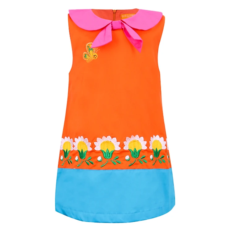 - Kiểu dáng đầm suông, cổ cánh sen thắt nơ kết hợp tay sát nách mang đến cho bé sự thoải mái và mát mẻ khi mặc.