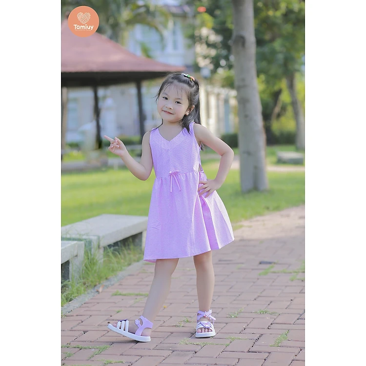 Đầm Thun Sọc Đối Xứng Tamiuy Chất Cotton 4 Chiều Cho Bé Gái (1-10 T)
