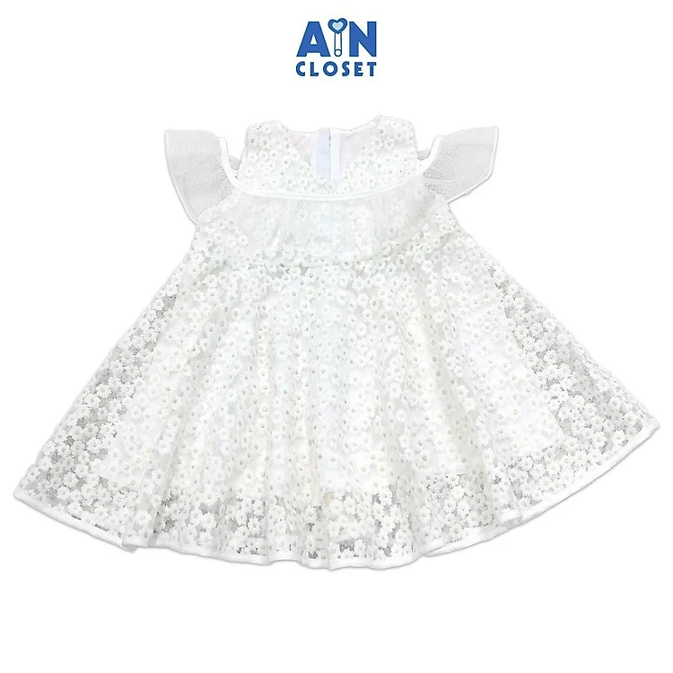 Đầm trễ vai bé gái họa tiết Hoa mai lụa trắng - AICDBGNFTY4G - AIN Closet