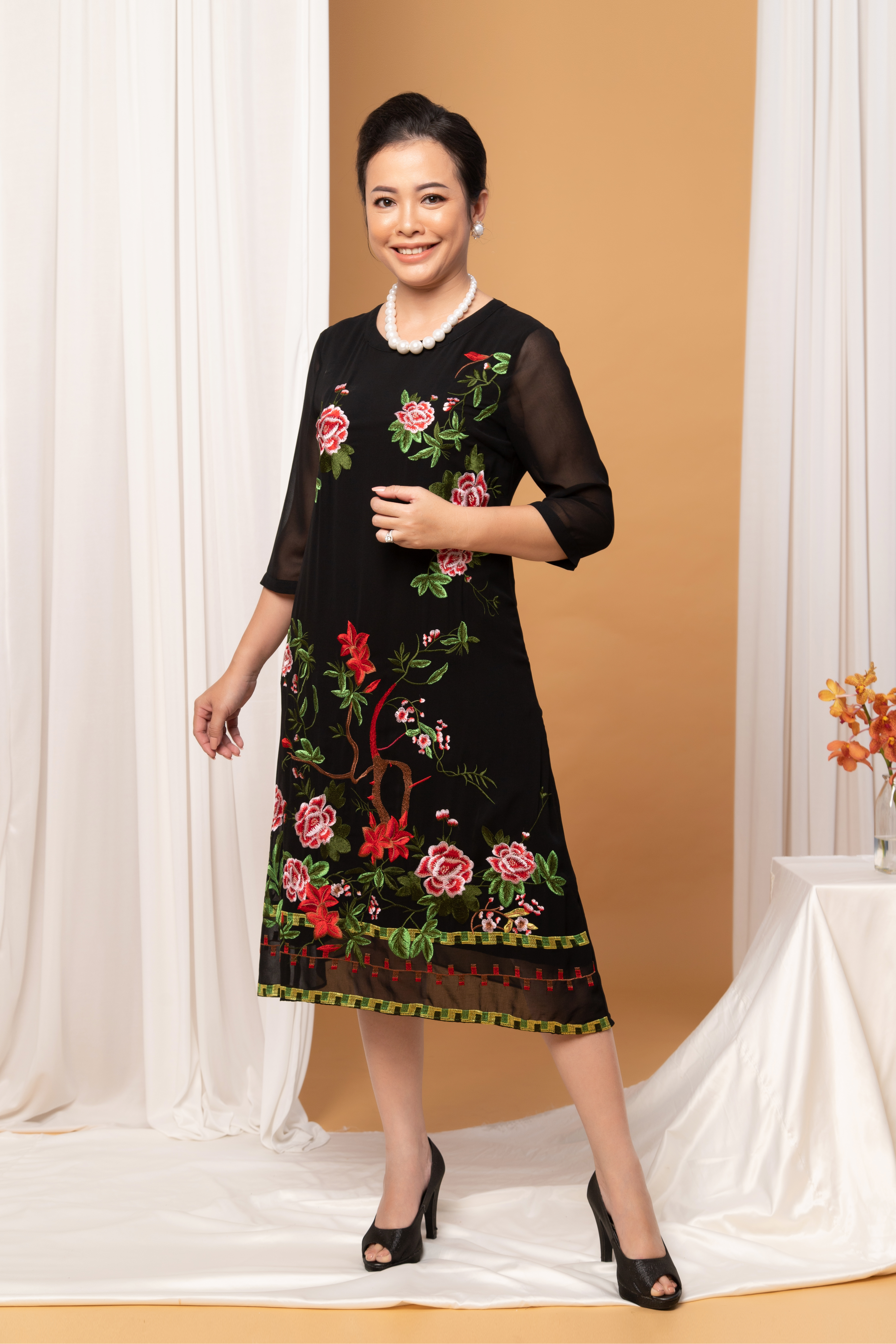 Đầm suông hoa thêu cao cấp , tạo cho người mặc cảm giác thoải mái.