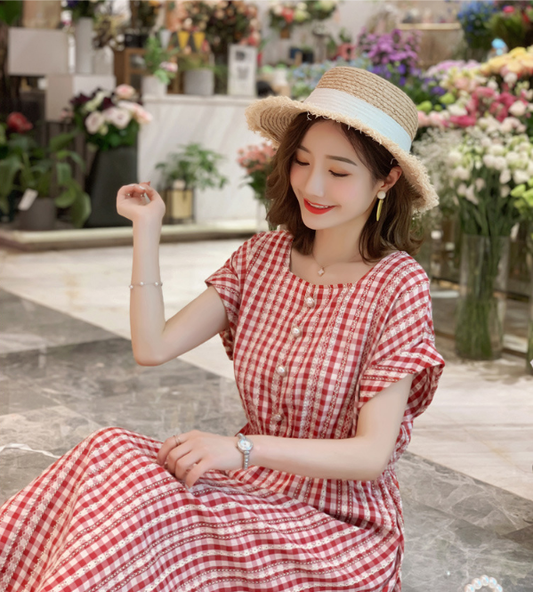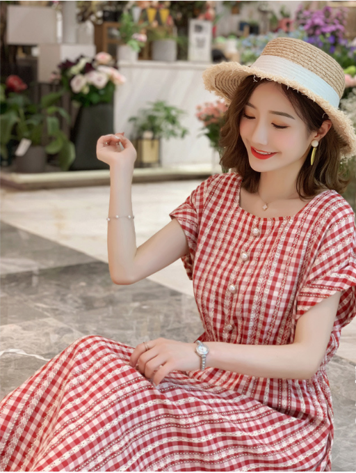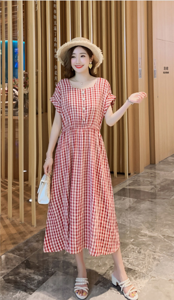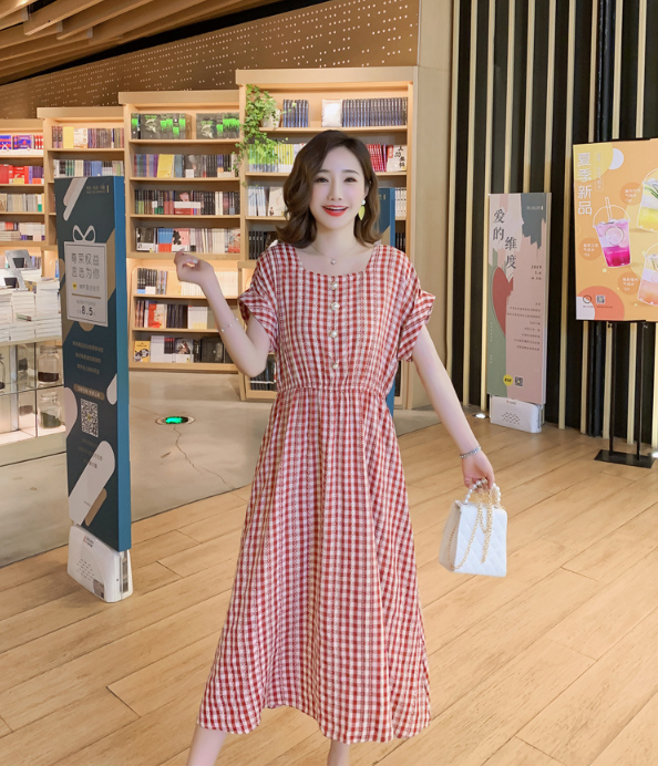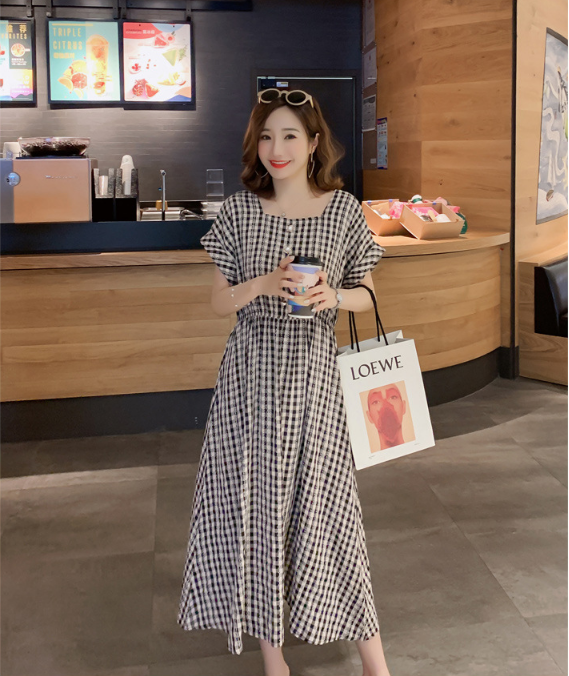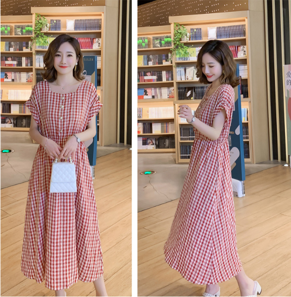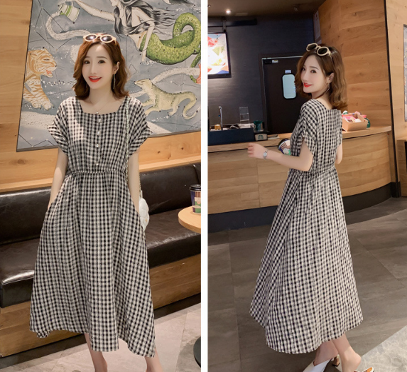 Đầm, Váy Bầu Công Sở Dài Qua Gối Azuno Az1304 Dáng Suông,Ngắn Tay Cho Mùa Hè, Họa Tiết Kẻ Caro Dễ Thương, Cổ Vuông Thời Trang