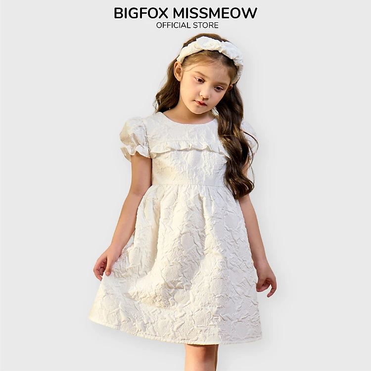 Đầm váy cho bé gái Bigfox Miss Meow size đại mùa hè tay phồng dáng babydoll vải taffeta hoa trắng size trẻ em 3-11 tuổi