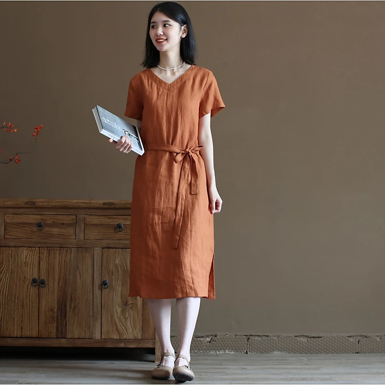 Đầm váy linen nữ dáng suông dài cổ tim, phong cách nữ thanh lịch Haint Boutique Da193