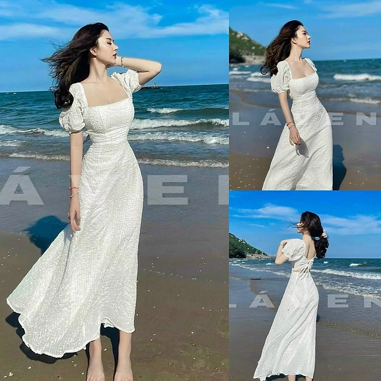 Đầm váy nữ maxi đan chéo lưng kết hợp tay phồng cực nhẹ nhàng, thướt tha thích hợp cho các nàng đi biển, đi chơi