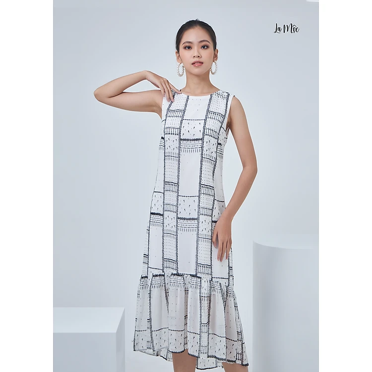 Đầm Voan Chiffon Tùng Nhún Bèo Họa Tiết Khung Maxivic, La Mộc - LM012297
