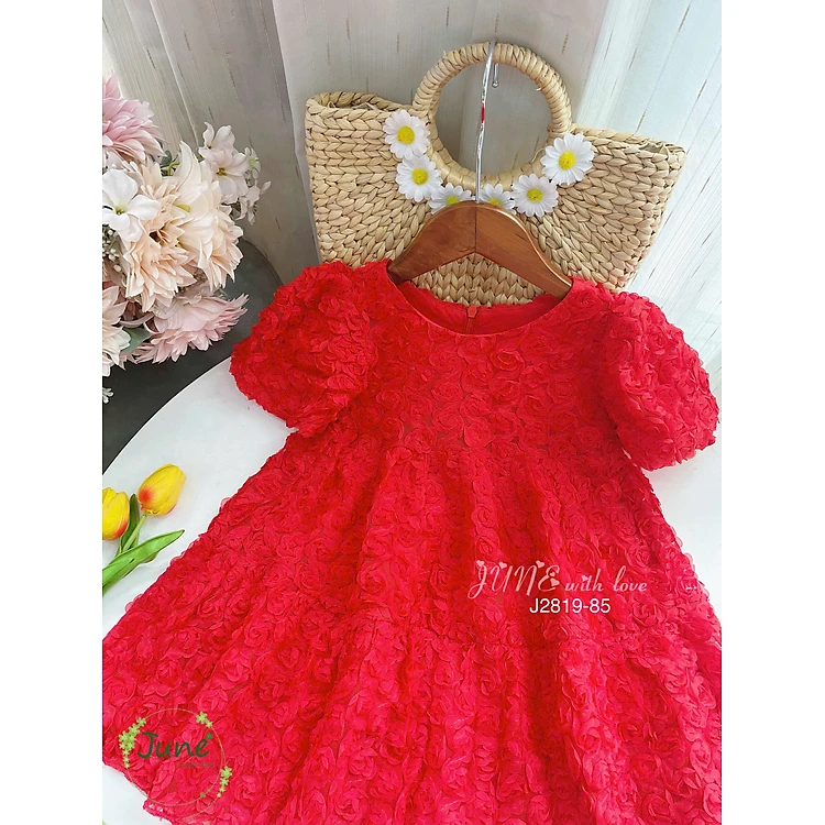 đầm voan công chúa cho bé gái hoa hồng màu đỏ noel giáng sinh biểu diễn dự tiệc hàng thiết kế cao cấp