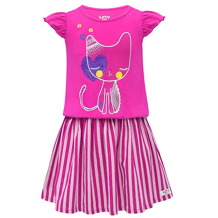 Đầm Xòe Bé Gái In Hình Mèo Kavio Kids GS43-N1 - Hồng Đậm