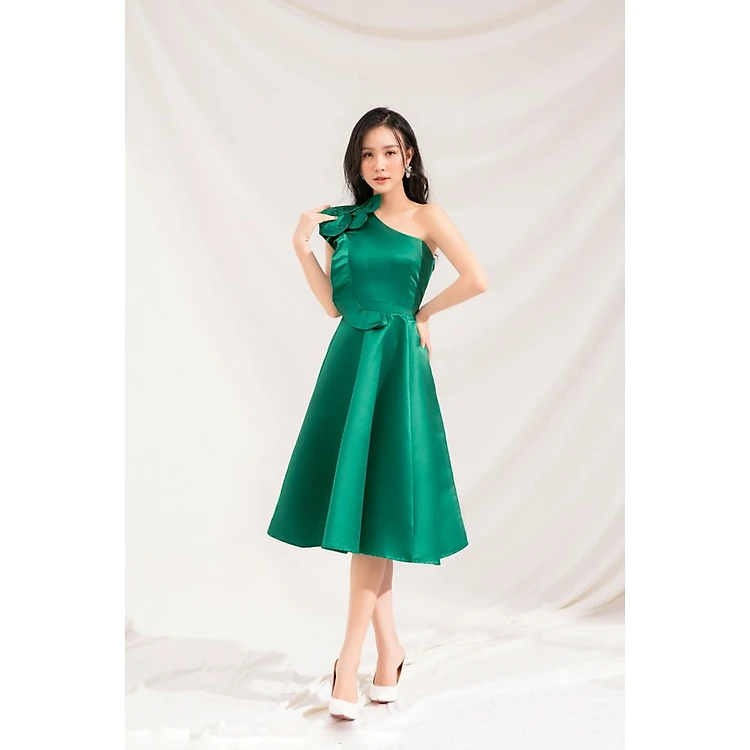 ĐẦM XÒE CỔ XÉO VAI ĐÍNH HOA LỚN 2463