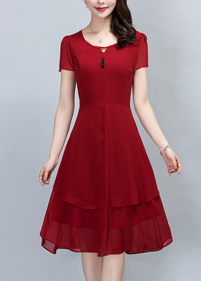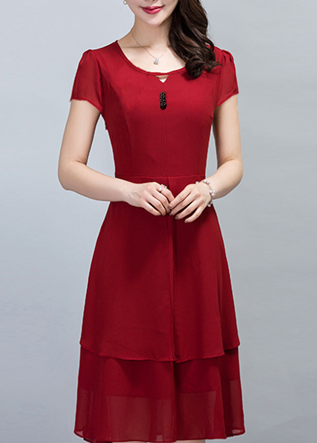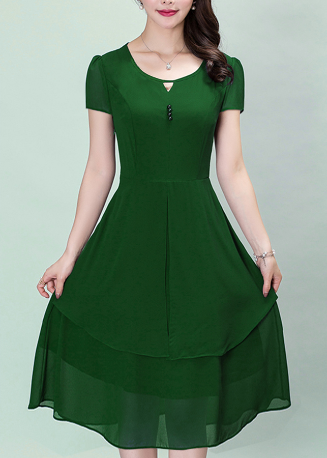 · Thiết kế dáng đầm xòe voan xẻ 2 tầng phối nút, tay ngắn, chất liệu không co giãn nhưng vẫn tạo được cảm giác thoải mái.