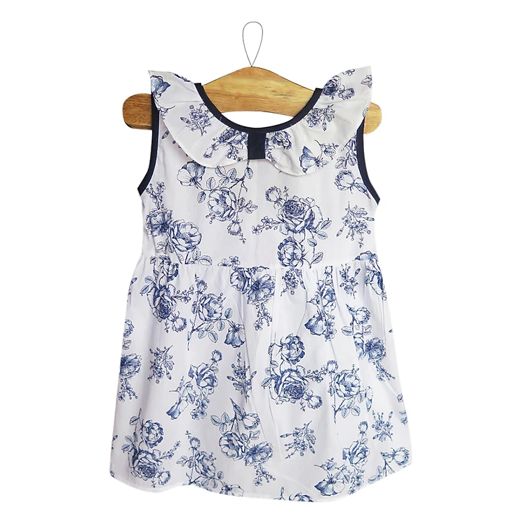 Đầm Xòe Hở Lưng Bèo Cổ Thắt Nơ Sau In Hoa Xanh Cuckeo HC 508 - Trắng có họa tiết hoa xanh sinh động in trên nền gam màu trắng, tạo điểm nhấn thu hút. Đầm form xòe, không kén dáng bé. Thân sau đầm may hở lưng đầy hiện đại, có nơ thắt để có thể dễ dàng điều chỉnh cho vừa vặn với bé. Đặc biệt với chất liệu vải cotton mềm mại, thấm hút mồ hôi tốt, tạo cảm giác thông thoáng dễ chịu cho bé khi mặc.
