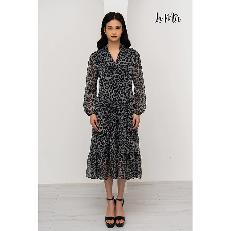 Đầm Xòe Lụa Hàn Xếp Tầng Họa Tiết Beo Maxivic, La Mộc - LM72153