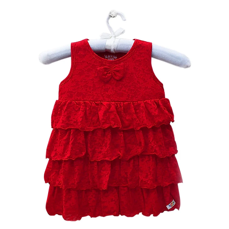 Đầm có form xòe kết hợp cùng 4 tầng bèo nhún thật điệu đà cho bé yêu trông thật duyên dáng khi mặc.Ngoài ra, đầm còn đính nơ nhỏ xinh trước ngực thật đáng yêu. Kiểu cổ tròn và sát nách tạo cho bé yêu cảm giác thoải mái hơn khi vui chơi vận động. Đầm sử dụng tông màu đỏ nổi bật mang đến phong cách sành điệu hơn cho các bé gái.