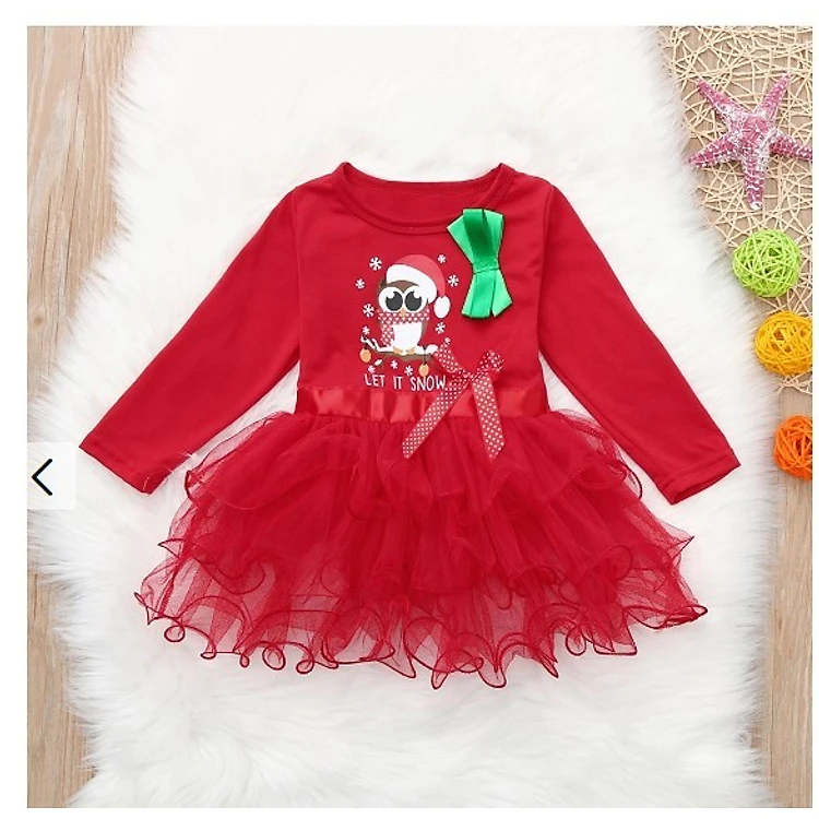 Đầm xòe noel phối ren tay dài dành cho bé gái