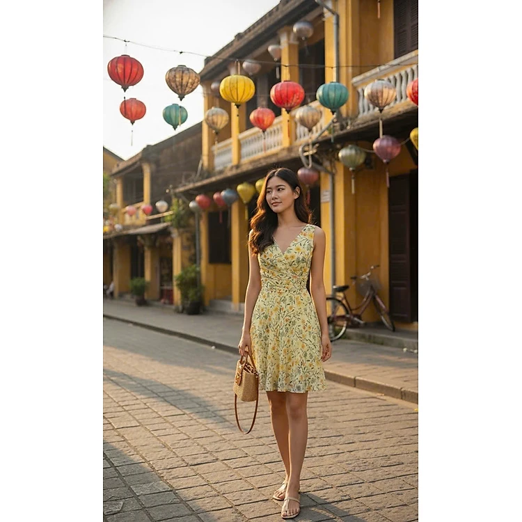 Đầm Xoè Nữ Tính Thanh Lịch Soleil hoa vàng thời trang thiết kế Hity Dre218