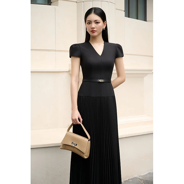 Đầm xòe xếp ly tay ngắn cổ V JOCELYN thiết kế cao cấp WHITE CHIC