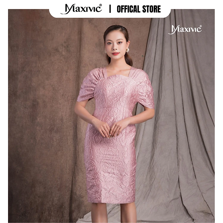 Đầm Xogam Hồng Tay Liền Họa Tiết Nổi Maxivic M122212