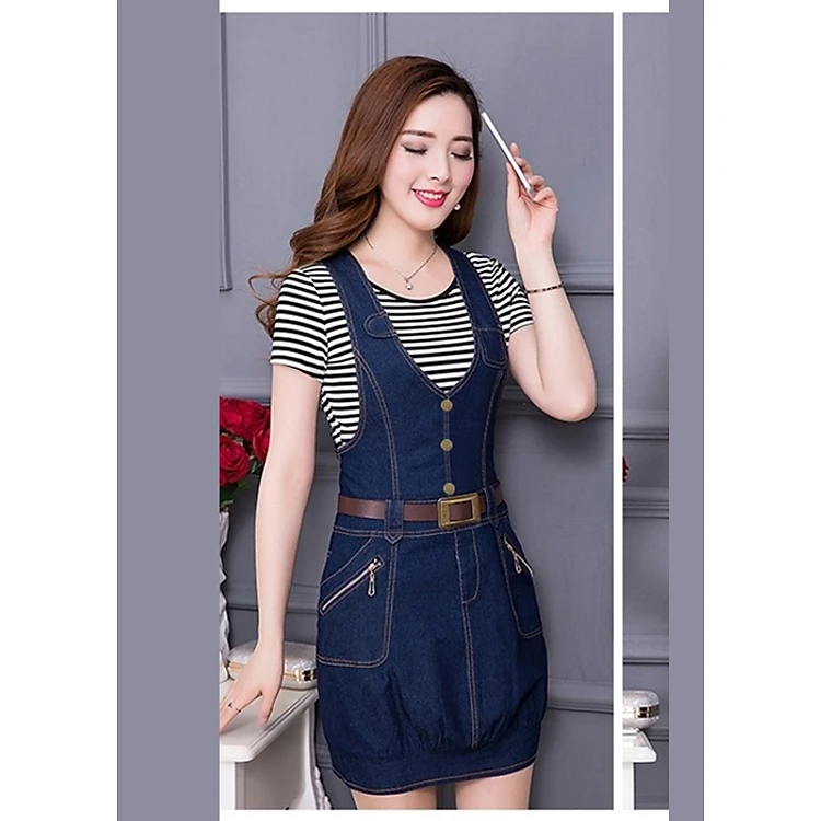 Đầm Yếm Jean Nữ Bo Thun Lai Thời Trang