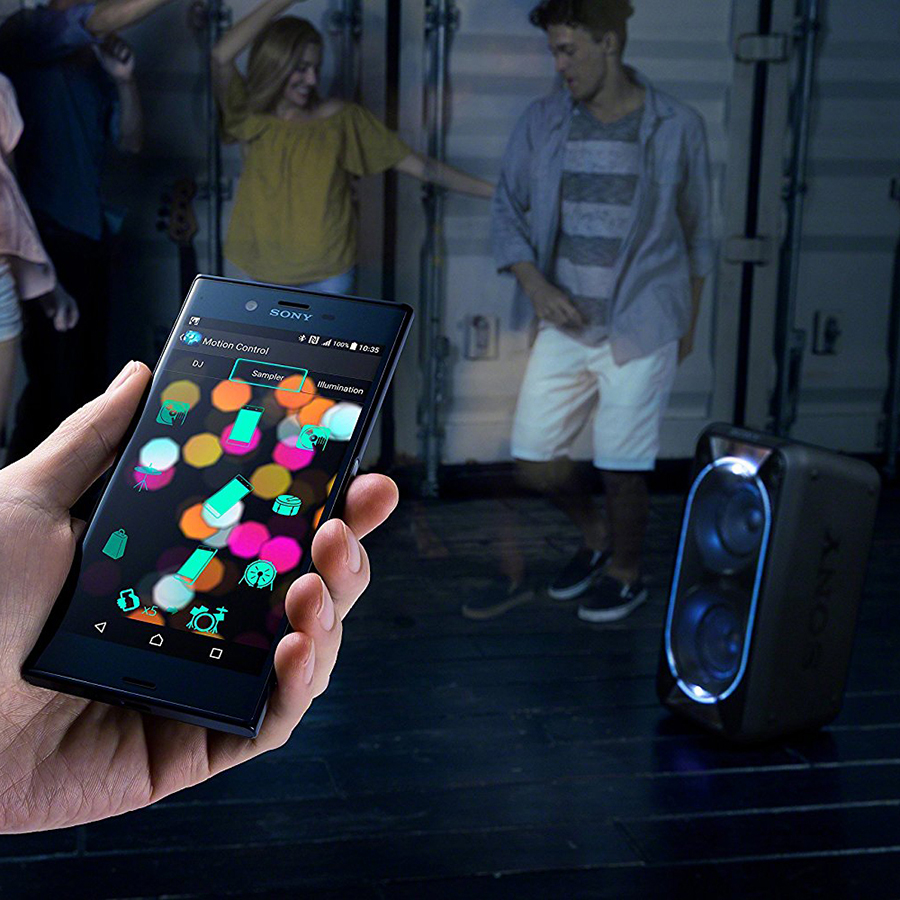 Làm chủ bữa tiệc ngay trên sàn nhảy bằng ứng dụng Sony | Music Center. Bạn có thể chọn bài, thay đổi cài đặt âm thanh và tạo danh sách bài hát ngay từ điện thoại. Đầu cắm Fiestable cho phép bạn điều khiển màu sắc đèn, điều chỉnh bộ chỉnh âm hoặc kích hoạt điều khiển DJ. Điều khiển chuyển động trực quan cho phép bạn phẩy tay để thay đổi thật dễ dàng.