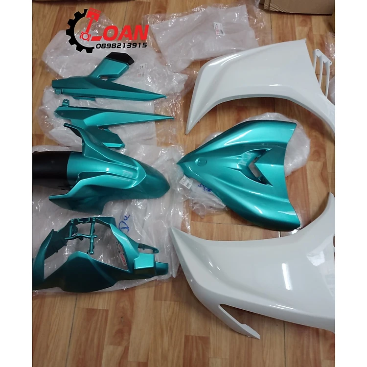 DÀN ÁO EXCITER 135 5 SỐ MÀU XANH NGỌC , TRẮNG