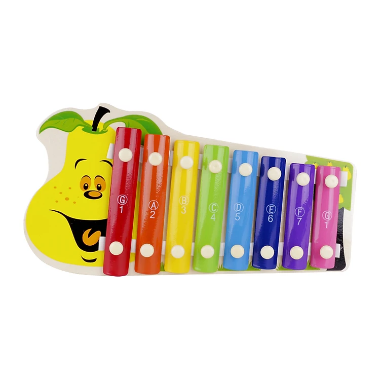 Mỗi thanh kim loại gắn trên Đàn gỗ 8 thanh hoa quả đều thiết kế thông minh; khi bé gõ vào mỗi thanh chúng sẽ phát ra những âm thanh trầm bổng khác nhau, mô phỏng âm vực của các nốt nhạc.