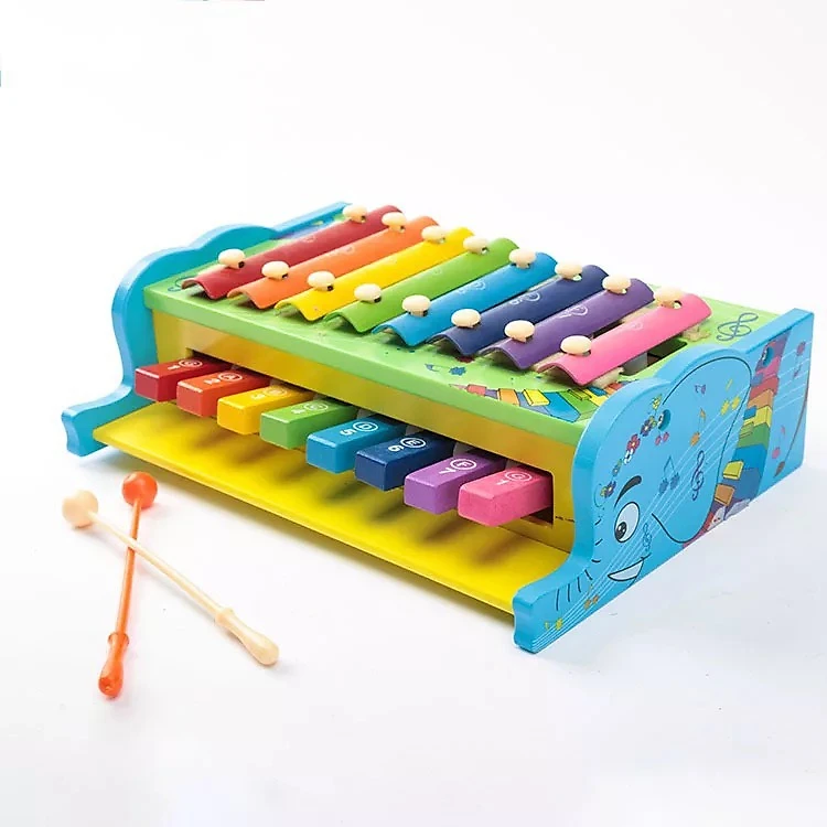 ĐÀN PIANO được thiết kế và sản xuất một cách công phu, tỉ mỉ. Trên nền gỗ tự nhiên là khung bộ đồ chơi mang hình dáng cây đàn Piano. Bề mặt cây đàn được chia làm 2 tầng. Tầng trên là những thanh hợp kim nhẹ, khi gõ phát ra những nốt nhạc cơ bản. Tầng dưới là những thanh gỗ nhỏ phỏng chế theo phím đàn Piano. Trên những thanh kim loại, thanh gỗ phỏng chế phím đàn có đánh số từ 1 đến 7 . Đại diện cho 7 nốt nhạc cơ bản: Đồ, rê, mi, pha, sol, la, si. Đi kèm là 2 que gõ bằng gỗ dùng để gõ lên những thanh hợp kim nhẹ.