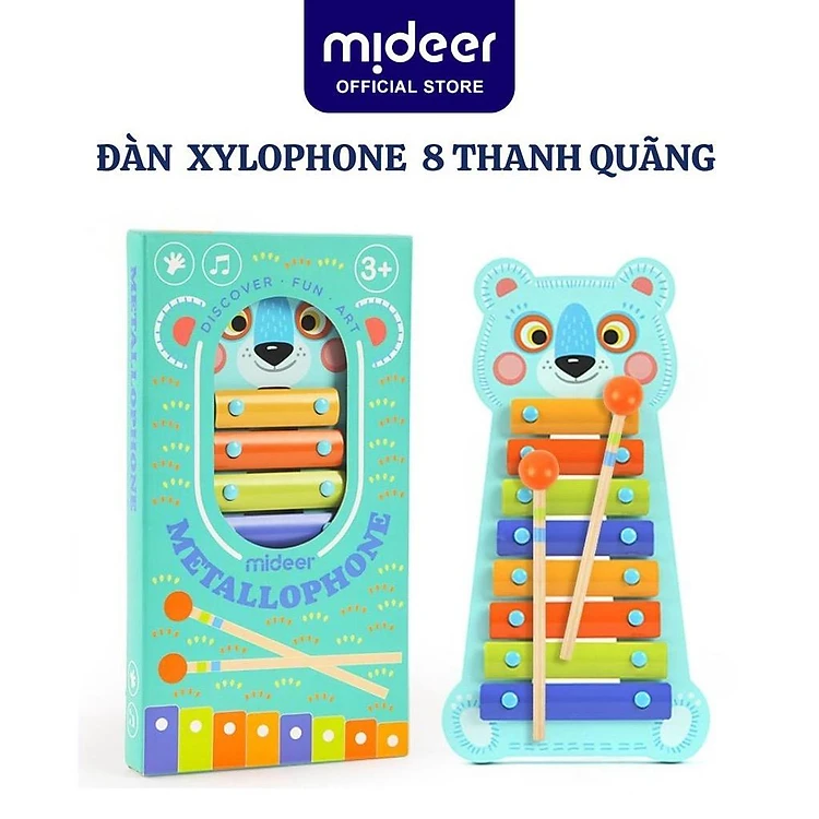 Đàn Xylophone Mideer bao gồm 1 thân đàn, 2 chiếc vồ ( dụng cụ chơi đàn)