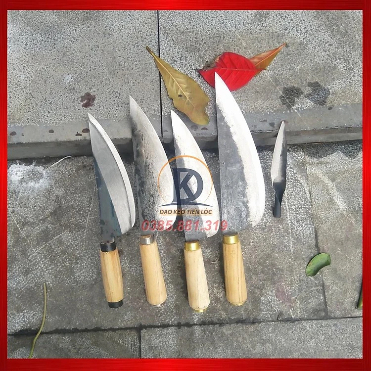 Dao rèn thủ công bởi các nghệ nhân xưởng rèn Tiến Lộc. Mỗi công đoạn đều được làm cẩn thận đảm bảo độ sắc bén, độ bền của dao.