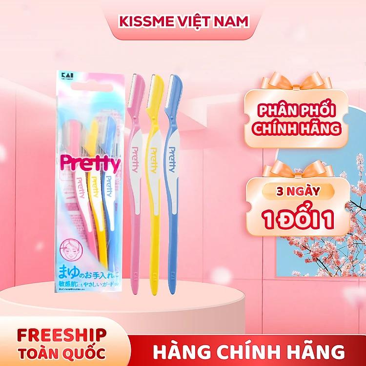 Dao Cạo Lông Mày Cán Dài Kai Pretty 12860 FRML-3PN (Set 3 cây)